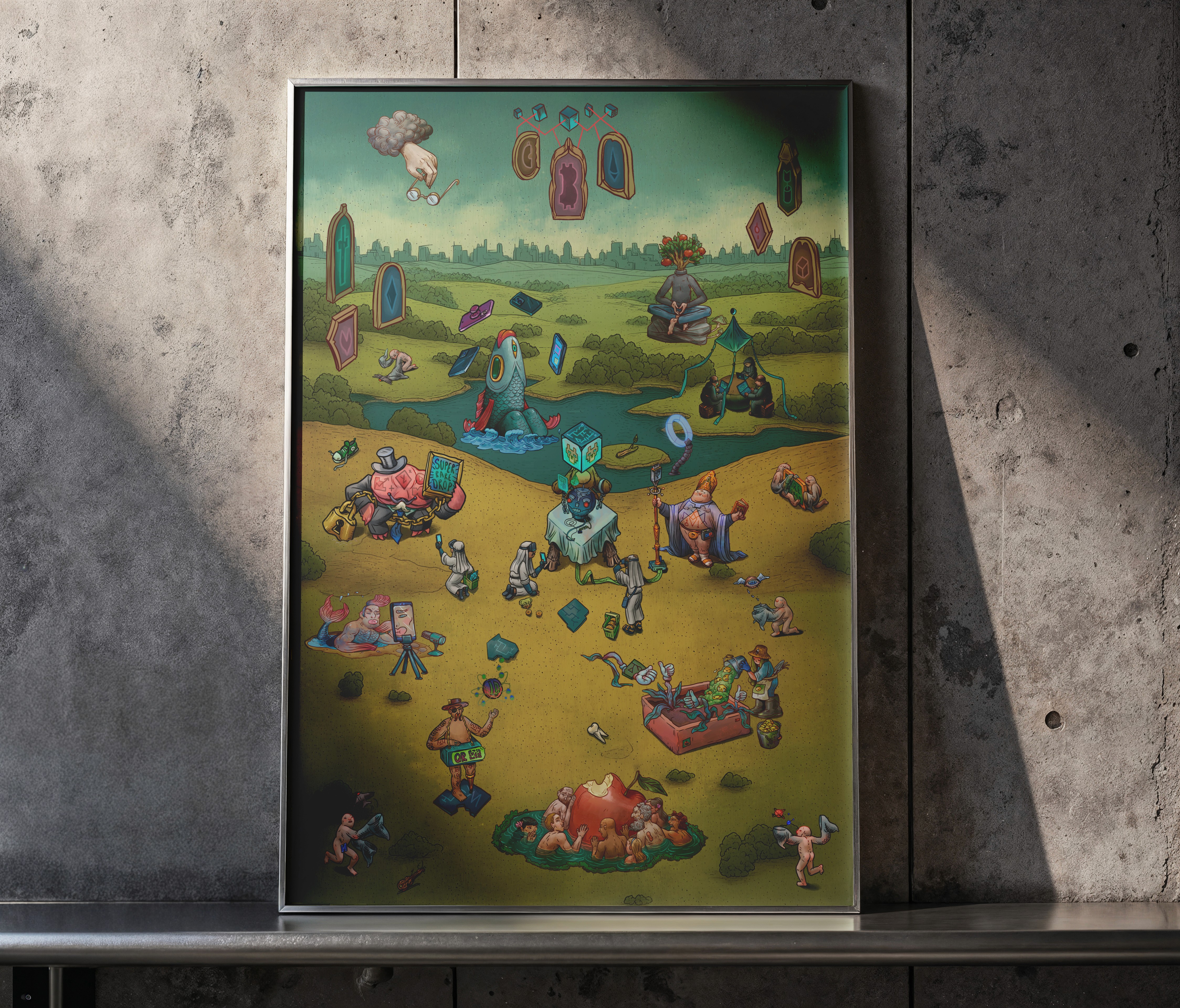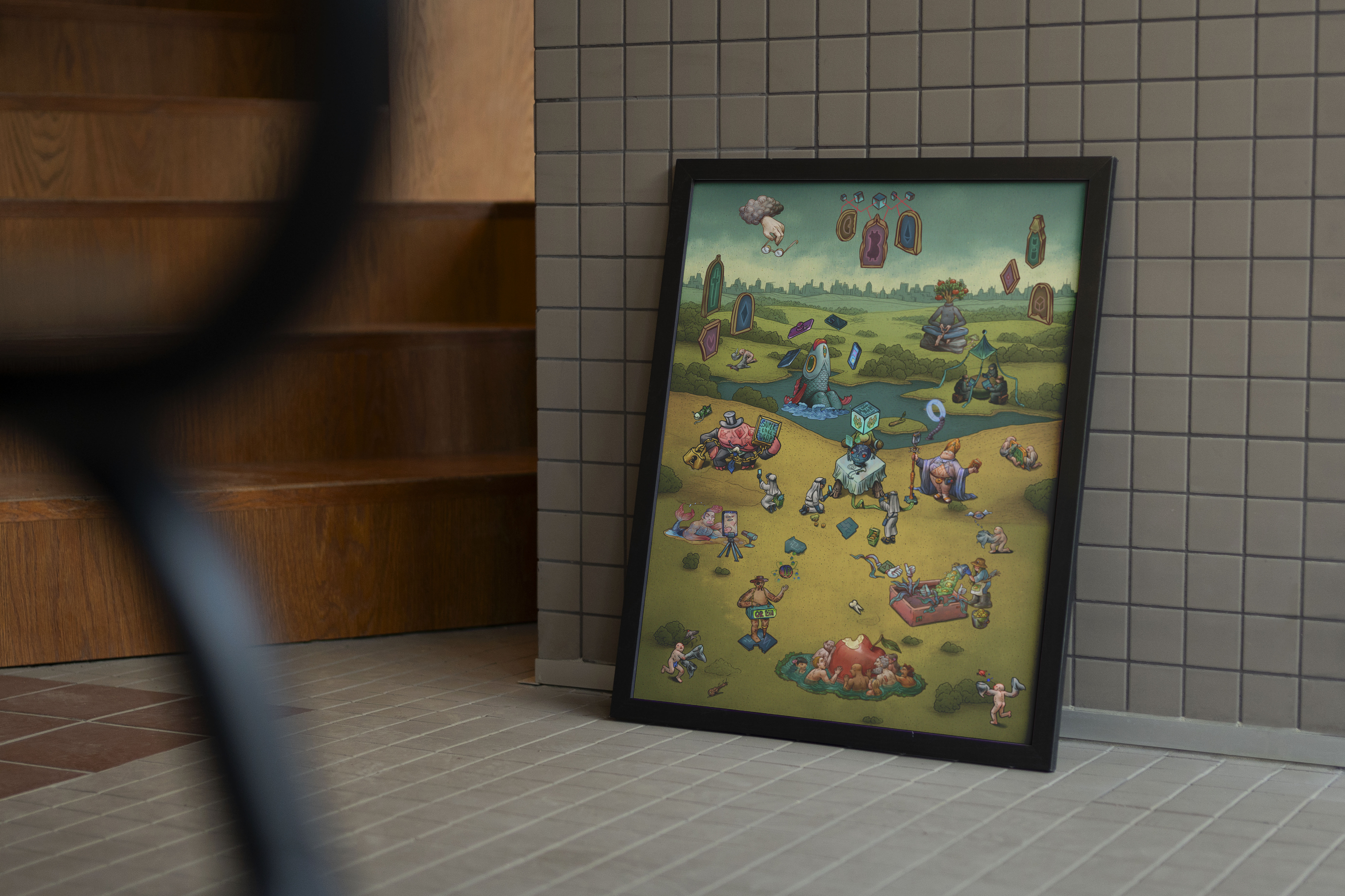“A playful exercise in world-building, absurdity, and meaning-making. And yeah, it looks amazing on my wall.”